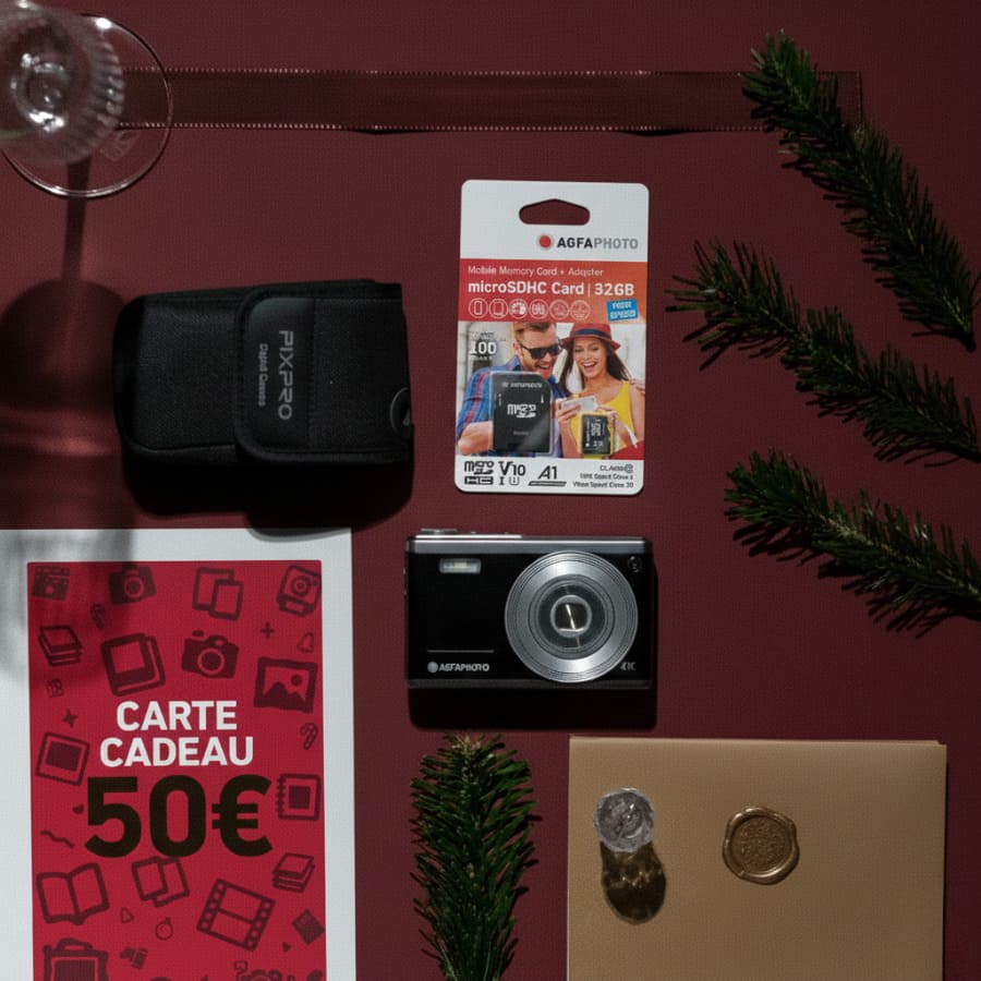 Schenken Sie unvergessliche Weihnachten mit unserer Exklusiven Foto-Geschenkbox! Dieses Set enthält alles, was Sie zum Festhalten Ihrer festlichen Erinnerungen benötigen: die Kompaktkamera AgfaPhoto Realishot DC9200, eine 32GB SD-Karte, eine Pixpro-Schutzhülle und eine 50€ AgfaPhoto Print Geschenkkarte, um Ihre Aufnahmen zum Leben zu erwecken. Dieses Set ist sofort nach dem Auspacken einsatzbereit und ideal für Fotoanfänger sowie für Enthusiasten, die Einfachheit und Qualität suchen. Exklusiv im Web, limitierte Mengen.