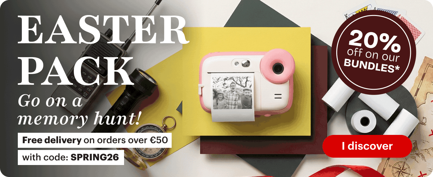Print professional-quality photos in 10 x 15 cm (4 x 6’’ = postcard format) from your smartphone or tablet via Bluetooth.