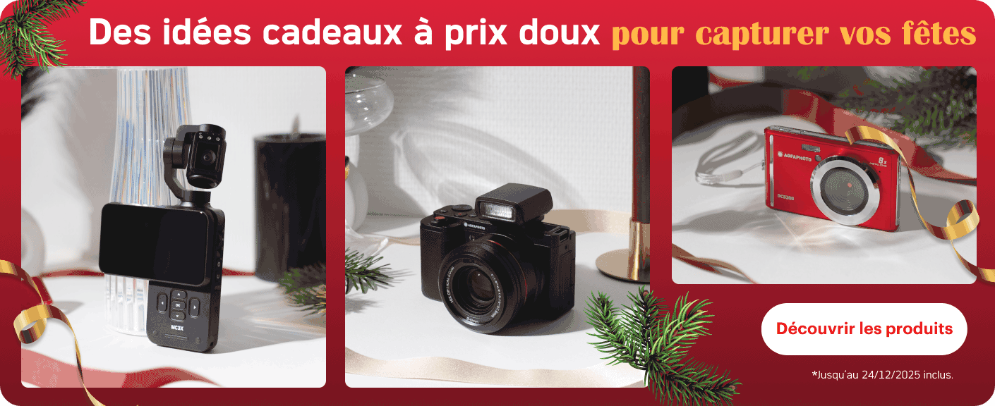 Libérez votre créativité avec la gamme Vlogging AgfaPhoto ! Découvrez nos kits complets appareil photo + micro pour un son impeccable, notre caméra gimbal 4K pour des images ultra-stables, et tous les accessoires essentiels pour filmer et monter votre contenu.